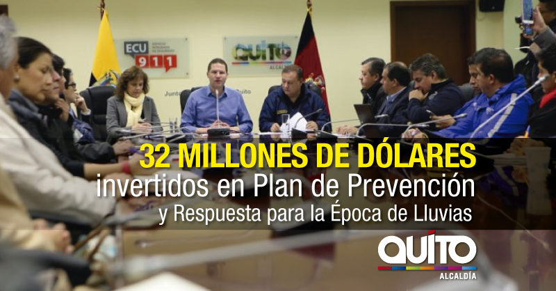 Para prevenir y mitigar las emergencias se han realizado 285 trabajos, todo el contingente municipal se encuentra listo, 600 cámaras monitorean los distintos sectores de la ciudad, 17 pasos a desnivel son controlados, en caso de que exista acumulación exagerada de agua, los albergues están listos para acoger a todos los quiteños que lo requieran, 1870 efectivos municipales se encuentran dispuestos para responder ante cualquier emergencia derivada de la actual temporada invernal y se encuentra activo el Fondo de emergencia que cuenta con 2 millones de dólares para dar una respuesta efectiva a cualquier situación.