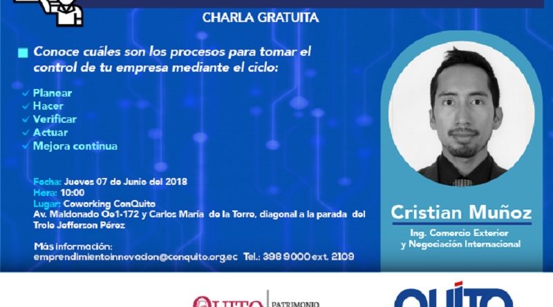 La Agencia de Promoción Económica ConQuito, en coordinación con Atenea Soluciones S.A., dictará la charla gratuita ‘Mejora continua para PYMES y su enfoque a procesos’, que se realizará el jueves 7 de junio, desde las 10:00, en el espacio de Coworking.