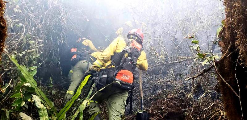 Combate de incendio en el Pululahua