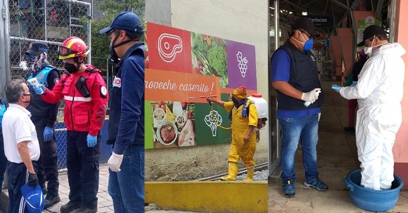 Además, en el mercado de las Cuadras, funcionarios del Cuerpo de Bomberos de Quito tomaron la temperatura a todas las personas que acudieron a este centro de abastos para evitar la presencia de personas con sintomatología de COVID-19.