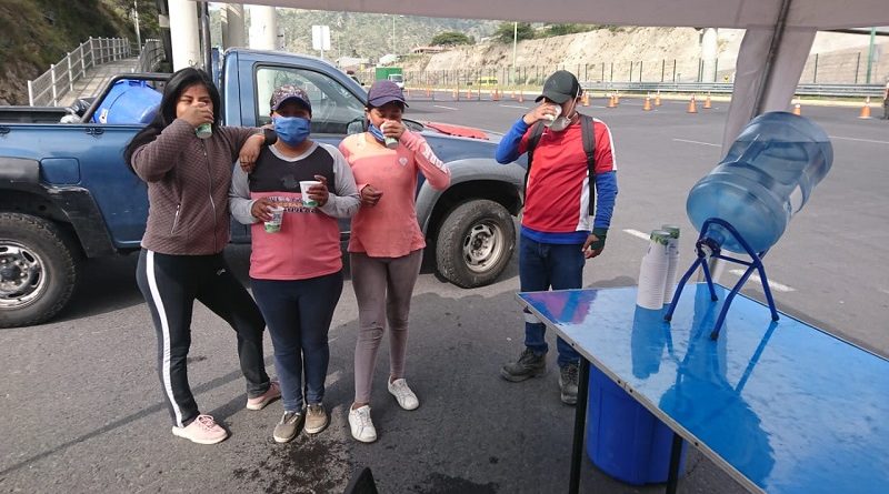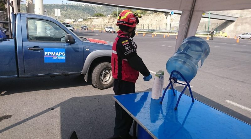 Él, junto con sus compañeros Patricio Nazca y Edison Sánchez, recorren la ciudad, entregando botellones de agua para hidratar a policías, militares, bomberos, agentes de tránsito, personal de salud y fumigadores situados en los siete puntos de acceso al Distrito Metropolitano de Quito: Oyacoto, Calacalí, Cutuglagua, Amaguaña, Pifo, Carapungo y Guamaní.