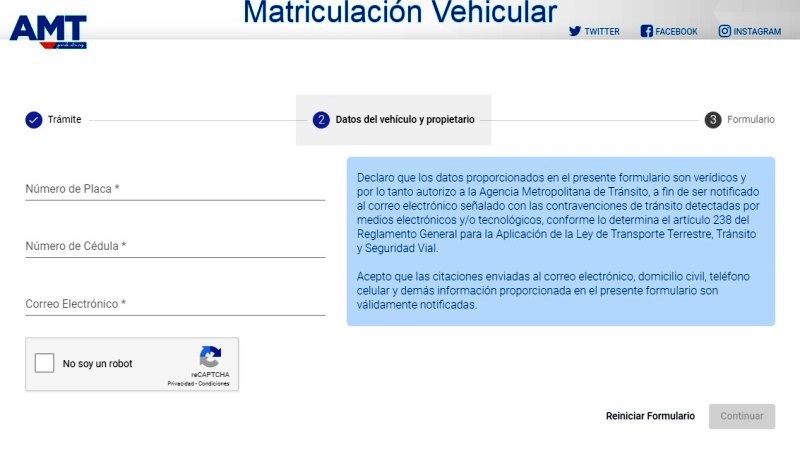 POR FAVOR LLEVO 15 DÍAS INTENTANDO MATRICULAR MI VEHICULO Y LA PAGINA QUE INDICA DE LA AMT NO PERMITEW HACER NINGUN TRAMITE ME PUEDEN INDICAR EN QUE DIRECCIÓN SE ENCUENTRA O EL LINK QUE LLEVE DIRECTAMENTE AL PROCESO DE MATRICULACION, YA PAGUE LA MATRICULA Y NO SE SI DEBO PAGA IMPUESTO AL RODAJE MI VEHICULO ES 1600 CC, GRACIAS