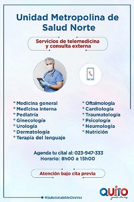La UMSN está ubicada en el sector de la Ofelia, calle Unión y Progreso OE 4353 y Diego de Vásquez y ha implementado el servicio del Call Center para la fijación de citas médicas a través del número 023-947333 en el horario de 8h00 a 15h00.