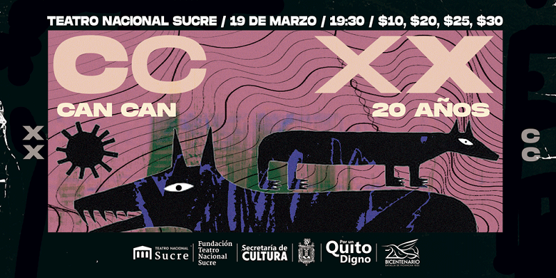 Desde hace 20 años Can Can ha sido una de las bandas más representativas de la escena ecuatoriana alternativa. Algunas de sus canciones, como ‘UIO’, ‘Caos’ o ‘Escopolamíname’ son himnos que han coreado varias generaciones de ecuatorianos. El concierto se realizará en el Teatro Nacional Sucre se realizará el sábado 19 de marzo, a las 19:30.