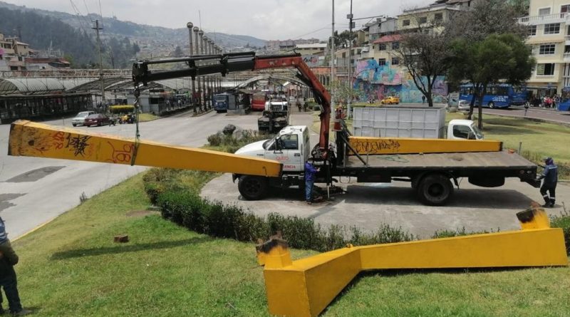 El Municipio de Quito a través de la Empresa Pública Metropolitana de Movilidad y Obras Públicas (Epmmop) retiró este jueves 29 de septiembre de 2022, la escultura ‘La Gran Necedad’ que se encontraba en la av. Pichincha y calle Sucre, con el fin de realizar el mantenimiento y posterior reubicación.