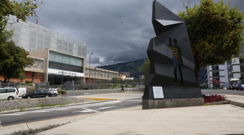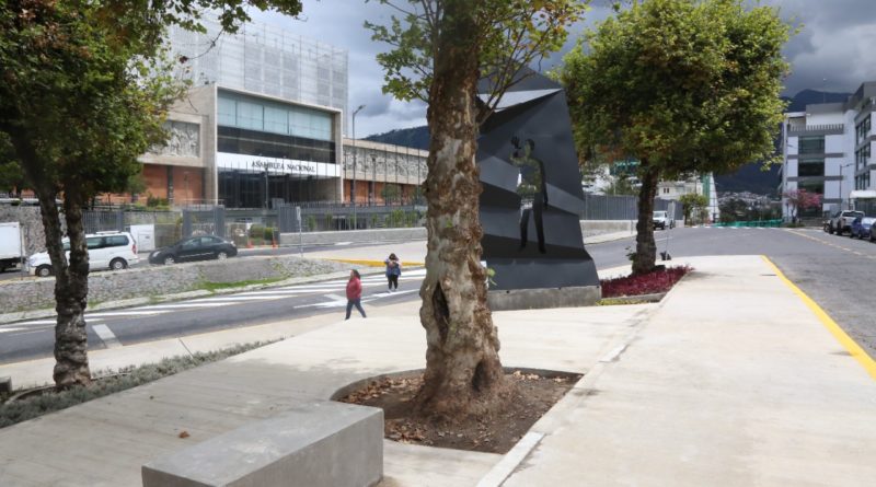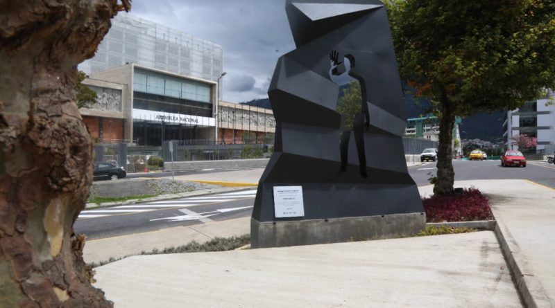 La obra ubicada en el triángulo que convergen la calle Yaguachi y la avenida Juan Montalvo, diagonal al edificio de la Asamblea Nacional, evoca la transparencia y la honestidad como valores principales del ser humano y del accionar público.