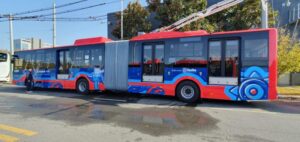 El primero de los 60 trolebuses procedentes de China partió ayer hacia Quito
