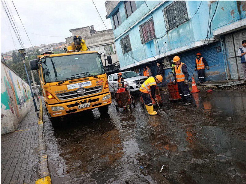 La Empresa Pública de Agua Potable y Saneamiento (Epmaps) mantiene jornadas intensivas de retiro de escombros y material acumulado en quebradas, especialmente en zonas donde el agua arrastra lodo y vegetación hacia áreas habitadas.