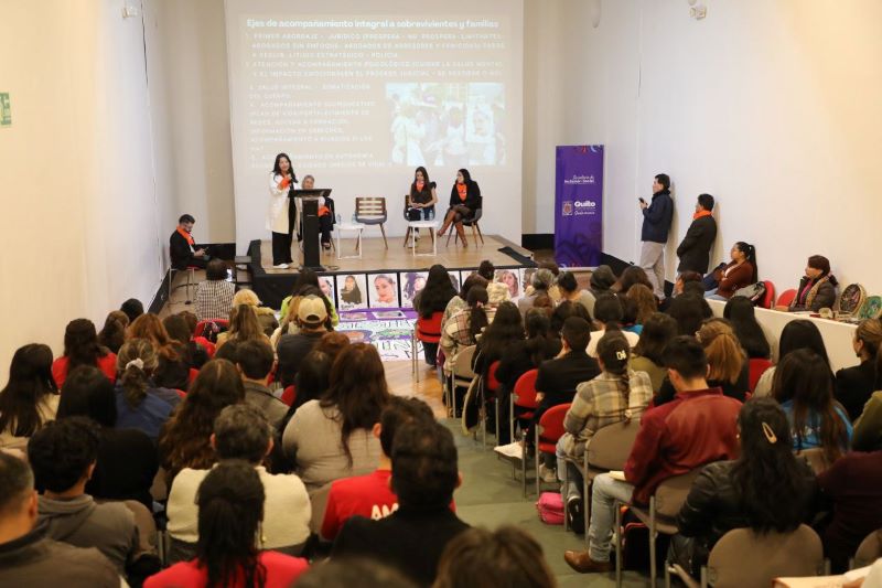 Quito, (Quito Informa). – En el auditorio del Centro de Arte Contemporáneo (CAC) se vivió una jornada marcada por la memoria, la fuerza colectiva y el compromiso con la vida. Allí se realizó el conversatorio “Reparación integral para víctimas indirectas de femicidio”, un espacio que reunió a instituciones, expertas, organizaciones, familiares de víctimas y al Coro Femenino por la Paz, cuya presentación abrió el encuentro con un mensaje profundo sobre dignidad y resistencia.