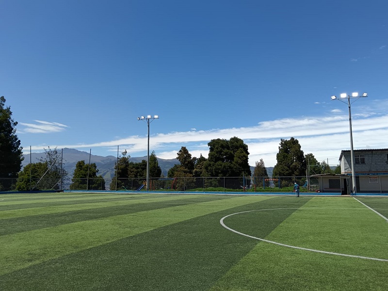 Quito, (Quito Informa).- La Liga Deportiva Barrial, Social y Cultural Modelo, en Lucha de los Pobres Alto, ya tiene nueva iluminación. El sector estrena un sistema moderno y seguro que permitirá que sus canchas vuelvan a llenarse de actividad hasta la noche. La obra incluyó sistema soterrado, postes de hormigón, luminarias y un tablero de control completamente nuevo.