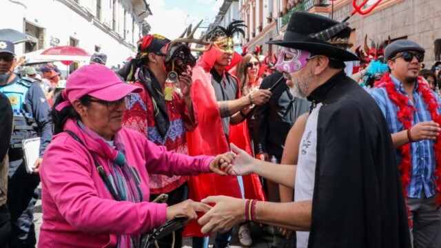 “Los barrios de Quito dijeron: vamos a recuperar la tradición del desfile y el baile de los Santos Inocentes, y eso es lo que hoy estamos viviendo en las calles”, señaló el Alcalde.