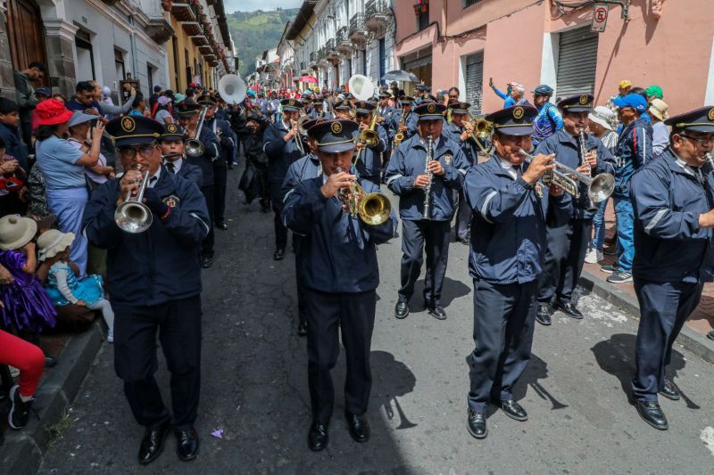El desfile contó con la participación de 20 agrupaciones de danza, seis bandas de pueblo, la Estudiantina Cuerdas del Ecuador y la Escuela de Danza Quiteña. El recorrido inició en la intersección de las calles Venezuela y Mejía y avanzó por el casco histórico hasta llegar a la Plaza Benítez y Valencia.