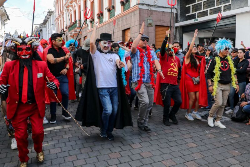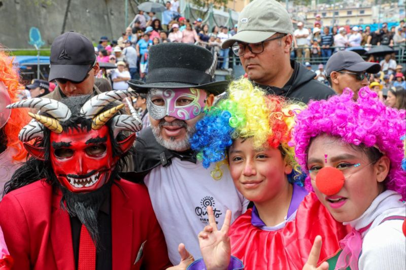 “Los barrios de Quito dijeron: vamos a recuperar la tradición del desfile y el baile de los Santos Inocentes, y eso es lo que hoy estamos viviendo en las calles”, señaló el Alcalde.