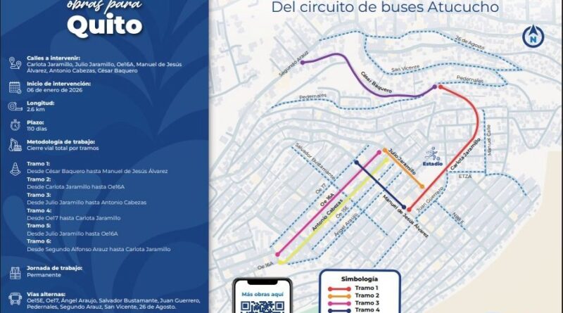 Quito, (Quito Informa). – Este 2026 inicia con una buena noticia esperada por miles de familias que residen en los barrios de Atucucho: Pablo Arturo Suárez, El Triunfo y Ruperto Alarcón. Desde el martes 6 de enero, seis vías fundamentales para el transporte público comenzarán su rehabilitación integral. Las calles Oe16A, Antonio Cabezas, Julio Jaramillo, Manuel Jesús Álvarez, Carlota Jaramillo y César Baquero, donde actualmente circulan más de 64 mil usuarios.