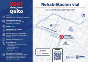 La intervención total en Cumbayá incluye también el tramo desde el redondel Las Bañistas hasta la avenida Pampite y, finalmente, el tramo de Miravalle que iniciará en las próximas semanas. Con estas intervenciones finales, el proyecto completo de la avenida Oswaldo Guayasamín quedará concluido en abril de este año, entregando a Cumbayá y los valles una vía mejorada que está beneficiando la movilidad de los sectores orientales de Quito.