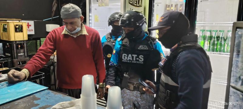 Quito, (Quito Informa). – Un macrooperativo de control liderado por el Municipio, ejecutado la noche del viernes 20 y la madrugada del sábado 21 de febrero de 2026, en el sur de Quito, dejó como resultado la detección de menores de edad en establecimientos nocturnos, un caso de suplantación de identidad, sanciones por consumo de alcohol en el espacio público y el desecho de bebidas sin registro sanitario.