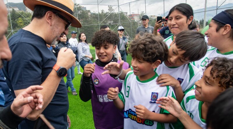 El alcalde destacó la importancia de las obras que fomentan el deporte como un espacio seguro para el desarrollo de la niñez y juventud en el combate al microtráfico y la delincuencia. «Además utilizaremos USD 100.000 adicionales del presupuesto participativo para adecuar en la parte alta un parque aledaño a la cancha para que nuestros guambras puedan jugar».