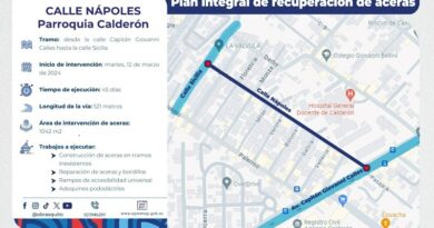 Leer másA partir de este martes 12 de marzo, la Empresa Pública Metropolitana de Movilidad y Obras Públicas (Epmmop) ejecutará la recuperación de aceras en la calle Nápoles de la parroquia Calderón (norte), en una longitud de 521 metros que tiene la vía, entre la Capitán Giovanni Calles y Sicilia.